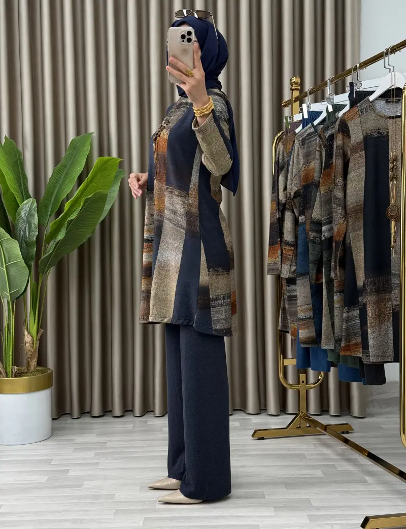 42 bedende göğüs 54 cm boy 95 cm basen 61 cm Pazu 19.5cm Tunik dijital baskılı yün viskon Pantolon boy 100 cm Yumuşak viskon