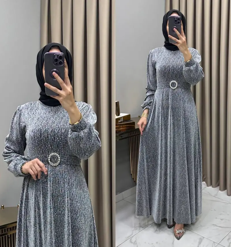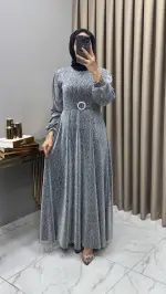Simli taşlı kumaş Likralı ve Tam kalıptır Boy 140 cm, Seyyar Kemerli, dilerseniz kemerdeki tokayı çıkartarakta kullanabilirsiniz